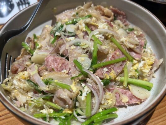 春雨炒め、パットウンセン(タイ語:ผัดวุ้นเส้น)も辛さはかなり控えめではありますが、タイの味を感じられることが出来る一品だと思います。