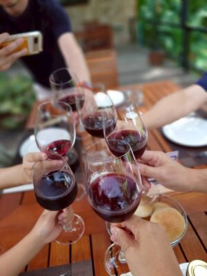 今回私以外はお酒大好きな皆さんなので、ちょっとした軽食とワインで乾杯!飲めない人も、ぶどうジュースがありますよ!