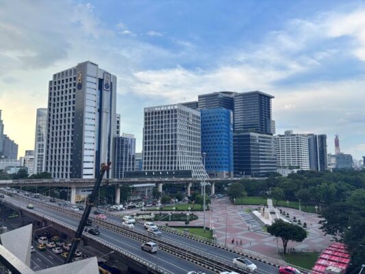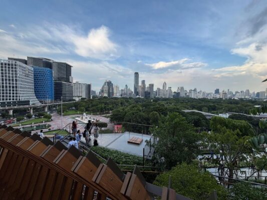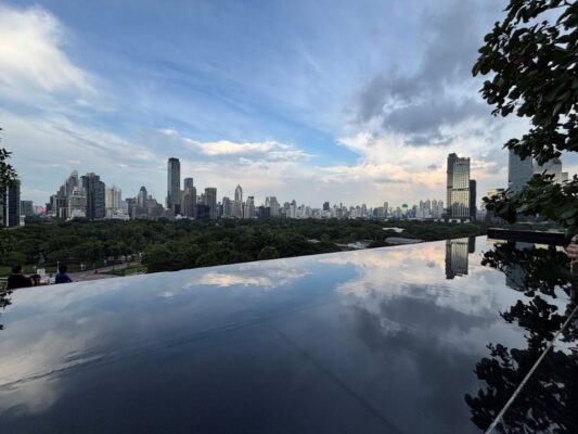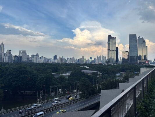 外に出ると、目の前にルンピニ―公園が広がり、「Central Park」という名前にふさわしい立地だと感じました。雨上がりの空がきれいです。