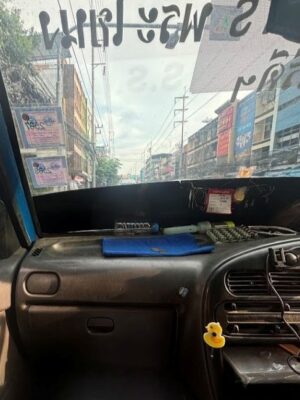助手席に乗ると、誰かが降りる度に10バーツを払いに来るので、目の前で運賃の受け渡しが発生します。