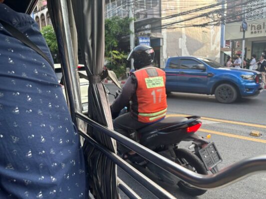 このようなゼッケンをつけているのはバイクタクシーです。バイクタクシーは自分のバランス感覚に自信がないので私は基本利用しませんが、通勤・通学で使っている人はとても多いです。