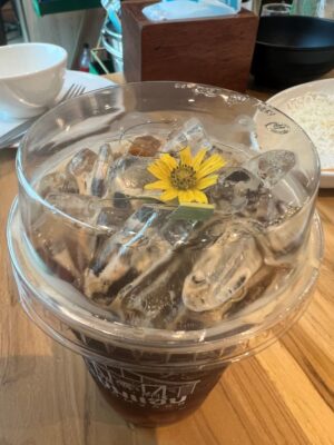 帰りにアイスアメリカ―ノをお持ち帰りようにお願いすると、可愛いタンポポが。