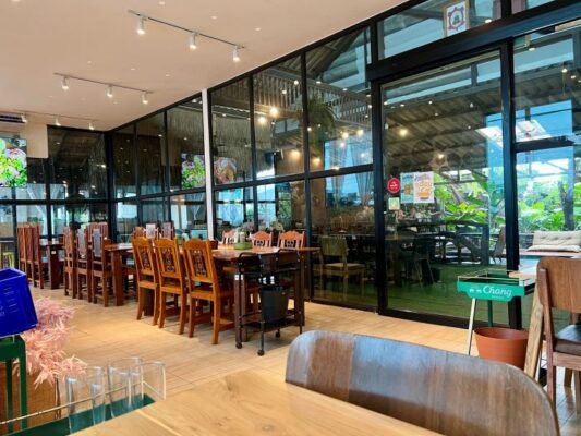 お外のテーブル席も充実していますし、ガラス張りのエアコンが効いたエリアもあります。