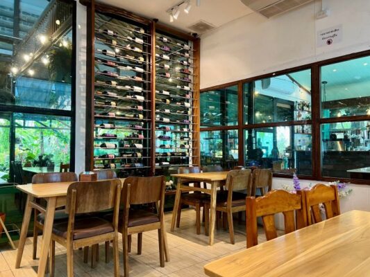 タイ料理と一緒にワインを召し上がるお客様も多いそうで、エアコンエリアには沢山のワインも並んでいました。