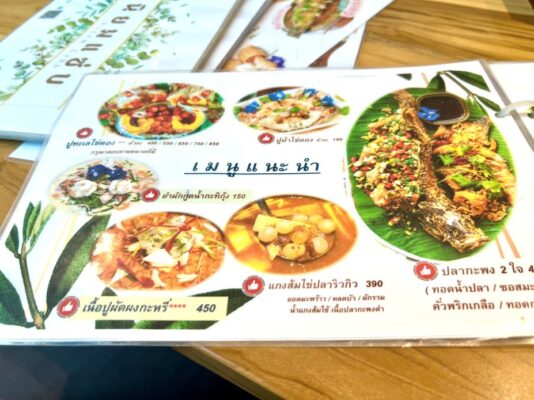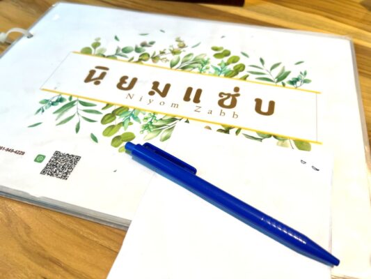 こちらのお店はメニューがタイ語で、オーダー時にはお客さん自身がタイ語で料理の名前を書く必要があります。人気店で、大変混雑するためにこのような方法をとっているのかもしれません。
