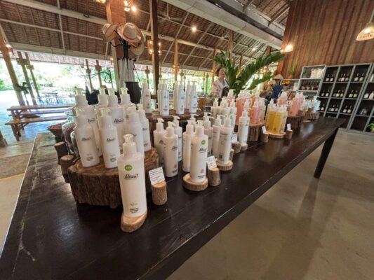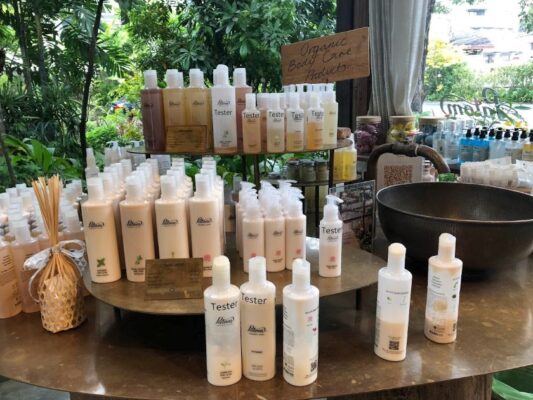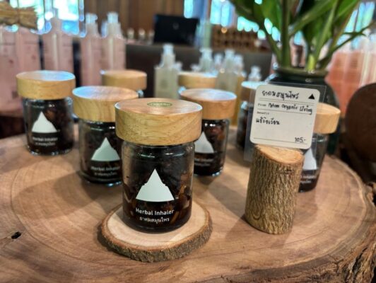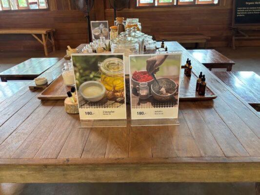 入口近くにはショップもあり、オーガニックなスキンケア商品やオリジナルハーブのヤードム(嗅ぎ薬)、マッサージバームなどが購入できますよ。