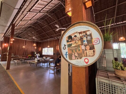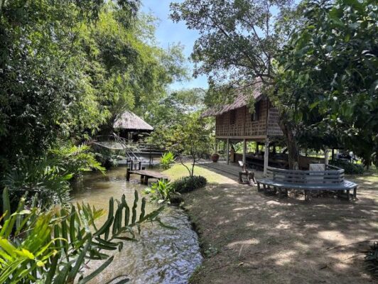 体験を終えてもう少し奥へ行くと川があり、橋を渡るとタイの伝統的な家屋を見学できたり、カフェでゆっくりとくつろぐことができます。
