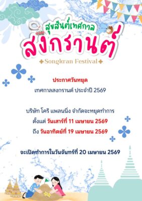 ประกาศวันหยุดบริษัทเนื่องในวันสงกรานต์ 2569