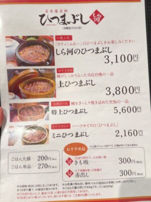 ร้านนี้มีความเชี่ยวชาญด้านปลาไหล เมนูหลักของร้านนี้จึงมีแค่ปลาไหลเท่านั้น ซึ่งไม่ใช่ปัญหาเพราะทุกคนที่มาเยือนร้านนี้ก็ต้องการลิ้มรสปลาไหลย่างแสนอร่อยแบบฉบับของนาโกย่าเท่านั้นเหมือนกัน