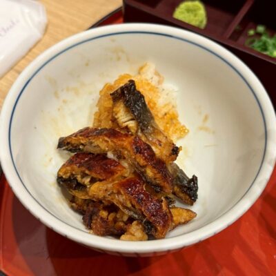 รวมถึงการหั่นปลาไหลเป็นชิ้นเล็ก ๆ แบบนี้ก็เช่นกัน ซึ่งแตกต่างจากอุนะด้งหรือข้าวหน้าปลาไหลที่อื่น ๆ ที่มักจะเสิร์ฟมาเป็นตัวโดยไม่หั่น