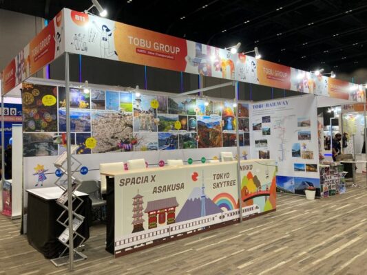 บูทของเราก็คือ “TOBU GROUP” ค่ะ 😄 ซึ่งให้บริการด้านรถไฟ โรงแรม สถานที่ท่องเที่ยว และอื่น ๆ