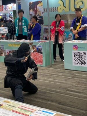 บูทที่อยู่ข้าง ๆ ของบูทเรามีนินจาสุดเท่ คอยแจกโบรชัวร์ให้กับทุกคนด้วยนะ มีตอนที่คุณนินจาตีลังกา