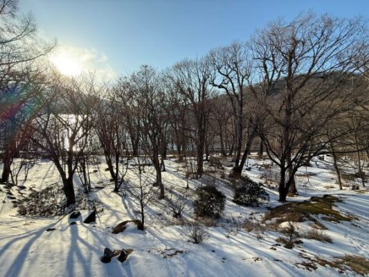 ออกมาเดินเล่นในยามพระอาทิตย์ใกล้ตกดินแบบนี้ก็มีความสุขดีมิใช่น้อยค่ะ ยิ่งเป็นบรรยากาศของทะเลสาบชูเซ็นจิโกะบวกกับหิมะด้วยแล้วล่ะก็ ต้องตั้งใจดื่มด่ำให้เต็มที่เลย!