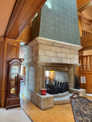 จุดเด่นอีกหนึ่งอย่างที่ไม่พูดถึงไม่ได้คือ เตาผิง ที่ตั้งอยู่กลางโรงแรมบริเวณล็อบบี้