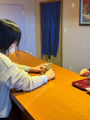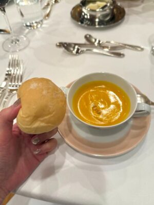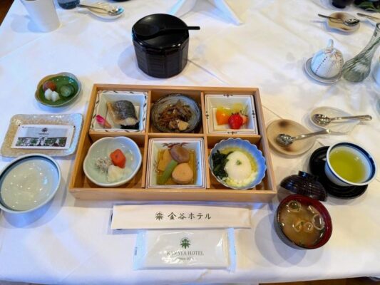 โดยเฉพาะขนมปังที่เสิร์ฟมาพร้อมกับซุป ทุกคนในโต๊ะพร้อมใจกันบอกว่าอร่อยมาก ถึงแม้ท้องจะเริ่มอิ่มแต่ก็ไม่หยุดที่จะหยิบขนมปังมากิน ซึ่งได้ข้อมูลมาว่าโรงแรมคานายะมีอีกธุรกิจหนึ่งคือร้านเบเกอรี่ ทำให้ไม่แปลกใจเลยว่าทำไมถึงมีขนมปังที่อร่อยขนาดนี้!