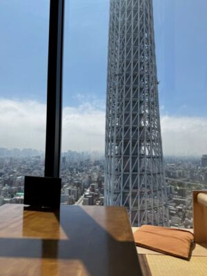 (ภาพบรรยากาศในตอนเช้าจากร้านฝั่งที่สามารถมองเห็น TOKYO SKYTREE)