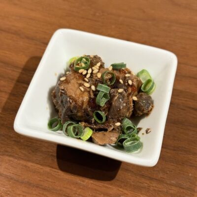 ก่อนที่อาหารจานหลักจะมาเสิร์ฟ ก็มีอาหารเรียกน้ำย่อยจานเล็กเป็นปลามากุโระหรือปลาทูน่าต้มซีอิ๊ว รสชาติหวาน ๆ เค็ม ๆ เรียกน้ำย่อยได้มากเลยทีเดียว