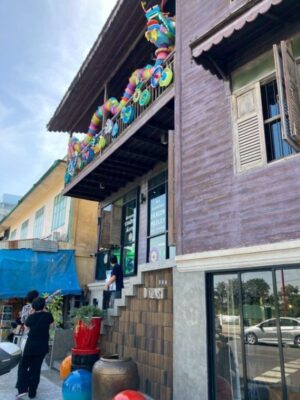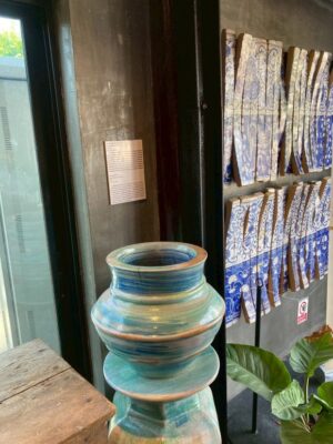 ที่นี่เป็นอาคารไม้หลังเก่าที่ได้รับการปรับปรุงขึ้นใหม่ให้กลายเป็นพื้นที่จัดแสดงงานศิลปะสุดเก๋ ด้านในตกแต่งด้วยงานเซรามิกจากโรงงานเถ้าฮงไถ่ที่ได้พาทุกคนไปเที่ยวชมกันมาในตอนแรก ความวินเทจของอาคารไม้หลังเก่าพอมาอยู่รวมกับงานเซรามิกที่มีเอกลักษณ์และร่วมสมัยแล้ว บอกเลยว่า…เป็นอะไรที่ลงตัวสุด ๆ เลยค่ะ
