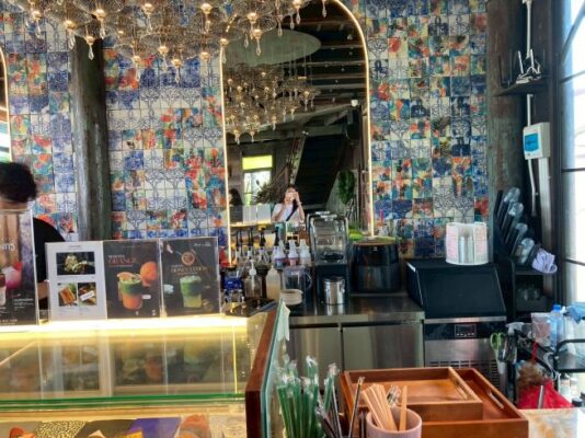 เริ่มต้นด้วยการเดินขึ้นบันไดไปที่ชั้น 2 โซนคาเฟ่ ที่มีเมนูขนมและเครื่องดื่มมากมาย ☕️ 🍰