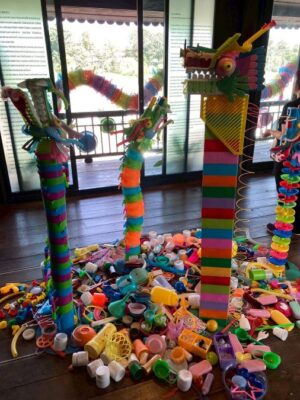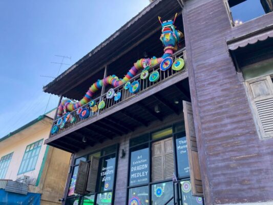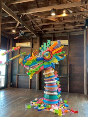 เป็นผลงานศิลปะที่เกิดจากความร่วมมือของชาวราชบุรีที่ช่วยกันส่งต่อวัสดุเหลือใช้ให้กับศิลปินได้นำมาสร้างสรรค์ผลงาน เป็นการปลุกสิ่งของที่หลายคนเลิกใช้ไปแล้วให้กลับมามีชีวิตชีวาอีกครั้งในรูปแบบของเจ้ามังกรสีสันสดใสหลาย ๆ ตัว ที่พอมองแล้วให้ความรู้สึกสนุกสนาน เป็นมังกรที่ดูทะเล้น ขี้เล่น น่ารักจริง ๆ ค่ะ