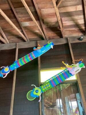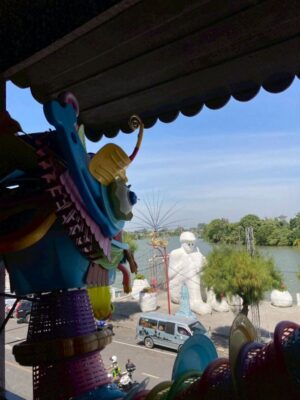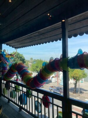 และมังกรไม่ได้มีแค่ในห้องจัดแสดงนี้เท่านั้นนะคะ เดินออกมาทางระเบียงก็จะเจอกับมังกรตัวยาวเกาะอยู่ด้วย พร้อมด้วยวิวของแม่น้ำแม่กลองที่สบายตา ไม่พอแค่นั้นด้านข้างของอาคารก็ยังมีมังกรอีกตัวให้ได้ตามไปถ่ายรูปกันต่อด้วย 📸✨