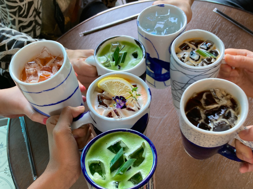 เครื่องดื่มแบบไทย ๆ ในคาเฟ่สไตล์ไทย ๆ ของศิลปินคนไทยอย่างคุณติ้ว วศินบุรี ศิลปินเซรามิก และทายาทรุ่นที่ 3 ของโรงงานเถ้าฮงไถ่ รวมถึงเจ้าของ “d Kunst Art space and cafe” คาเฟ่และหอศิลป์ร่วมสมัยแห่งจังหวัดราชบุรี